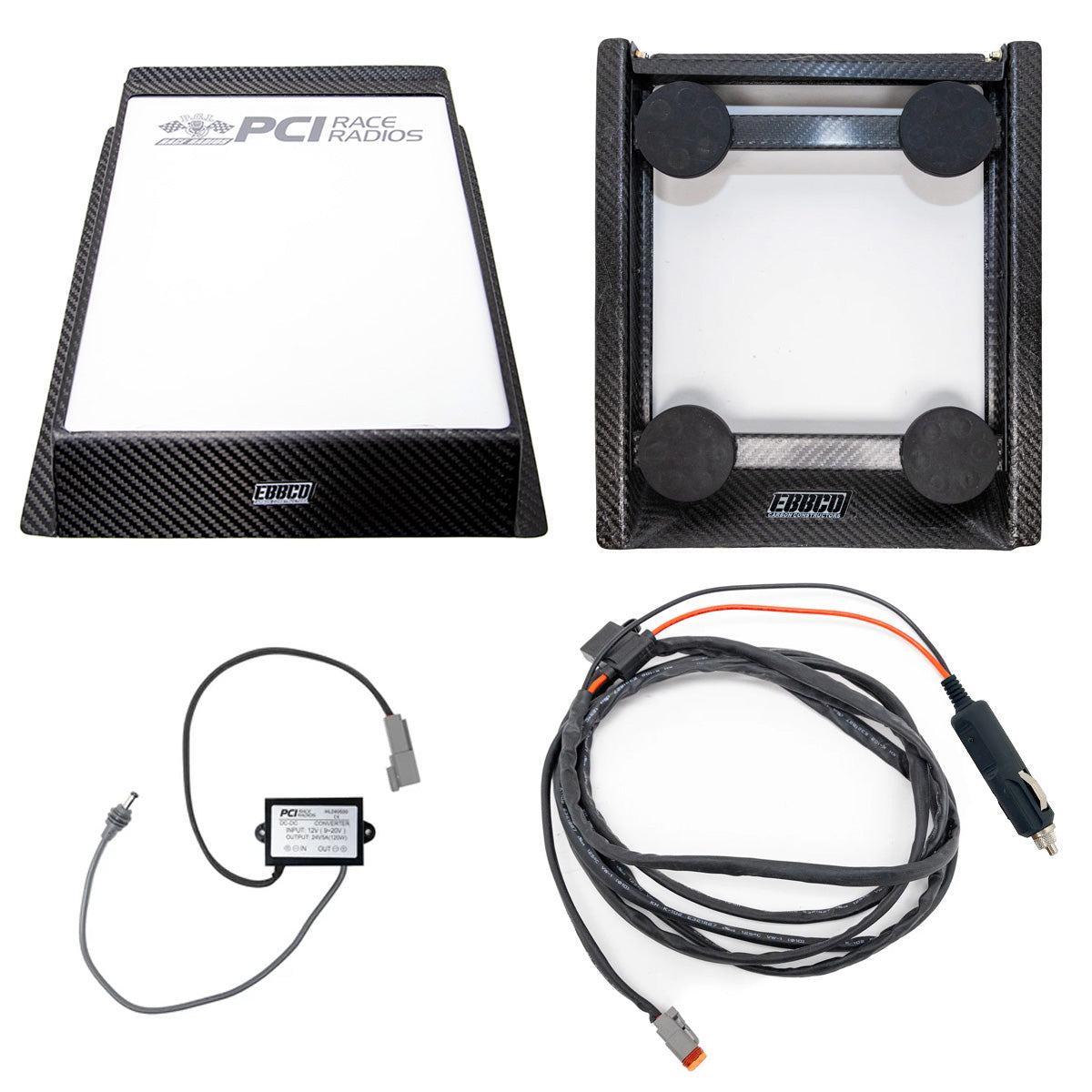 This package includes everything you need to stay connected during your racing or chasing, no matter how far off the beaten path you go. Options available for race or chase vehicles, the Ebbco carbon fiber construction bracket and secure PCI cables offer you connectivity in the harshest environments.